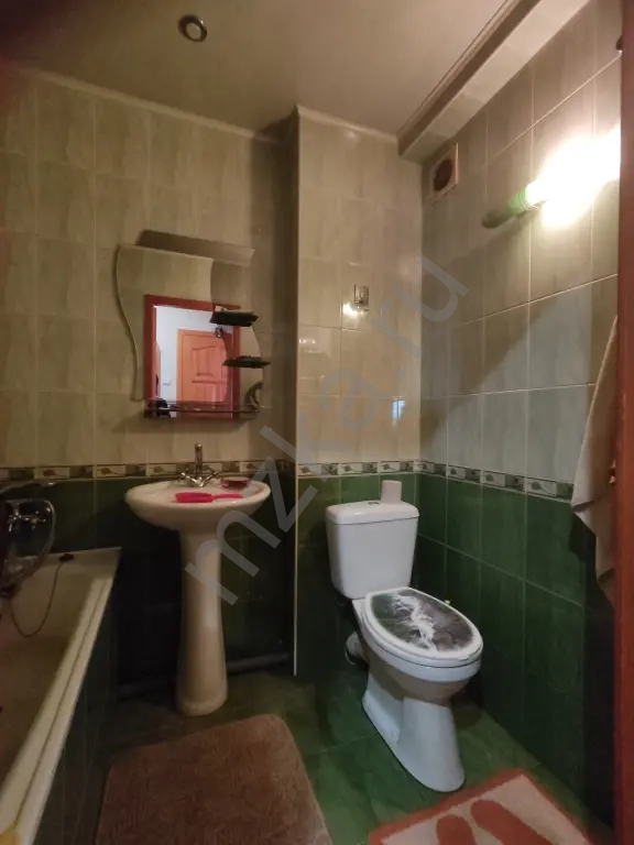 - Совмещенный санузел с плиткой на стенах и полу.
