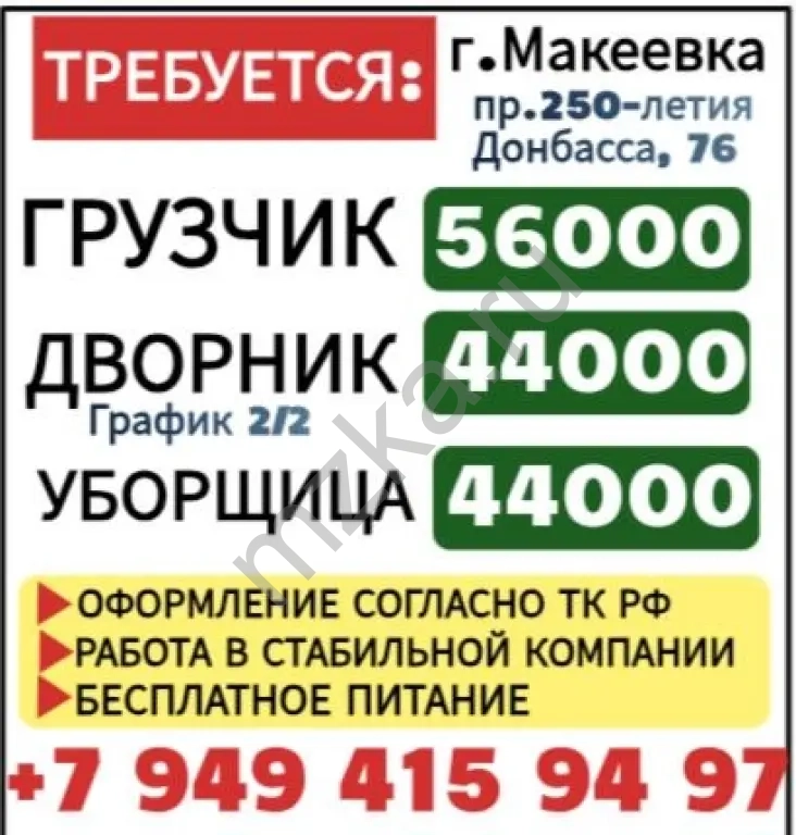 Дружный коллектив Развозка сотрудников рабочим автобусом зависит от графика Донецк (буденовский район Караван), Крытый рынок (Калининский район) и по Макеевке: Миси (Черемушки, Бажанова Даки) Капитальная, Зелёный, Харцызску (автовокзал, мкр Металлургов, мкр Юбилейный)